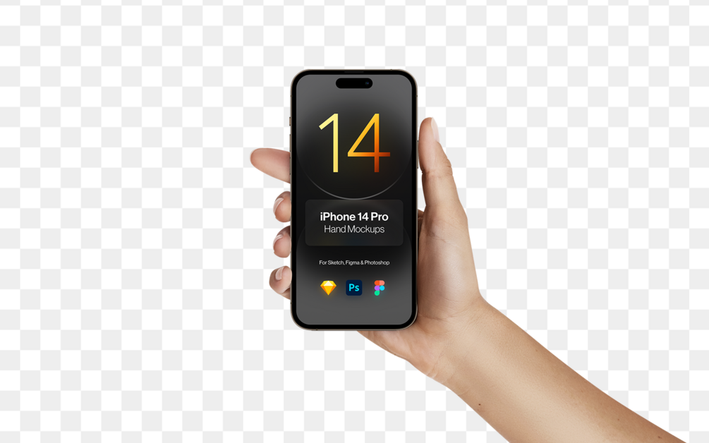 Brand New iPhone 14 & iPhone 14 Pro, Mockups on transparent background. Awesome pack of customisable templates with brand new iPhone 14 Pro, iPhone 14. Exclusive 2 female hands with light & dark variation. Easy to customize. High quality mockups to create the perfect presentation for your design. Compatible with Sketch, Figma and Photoshop CS/CC.